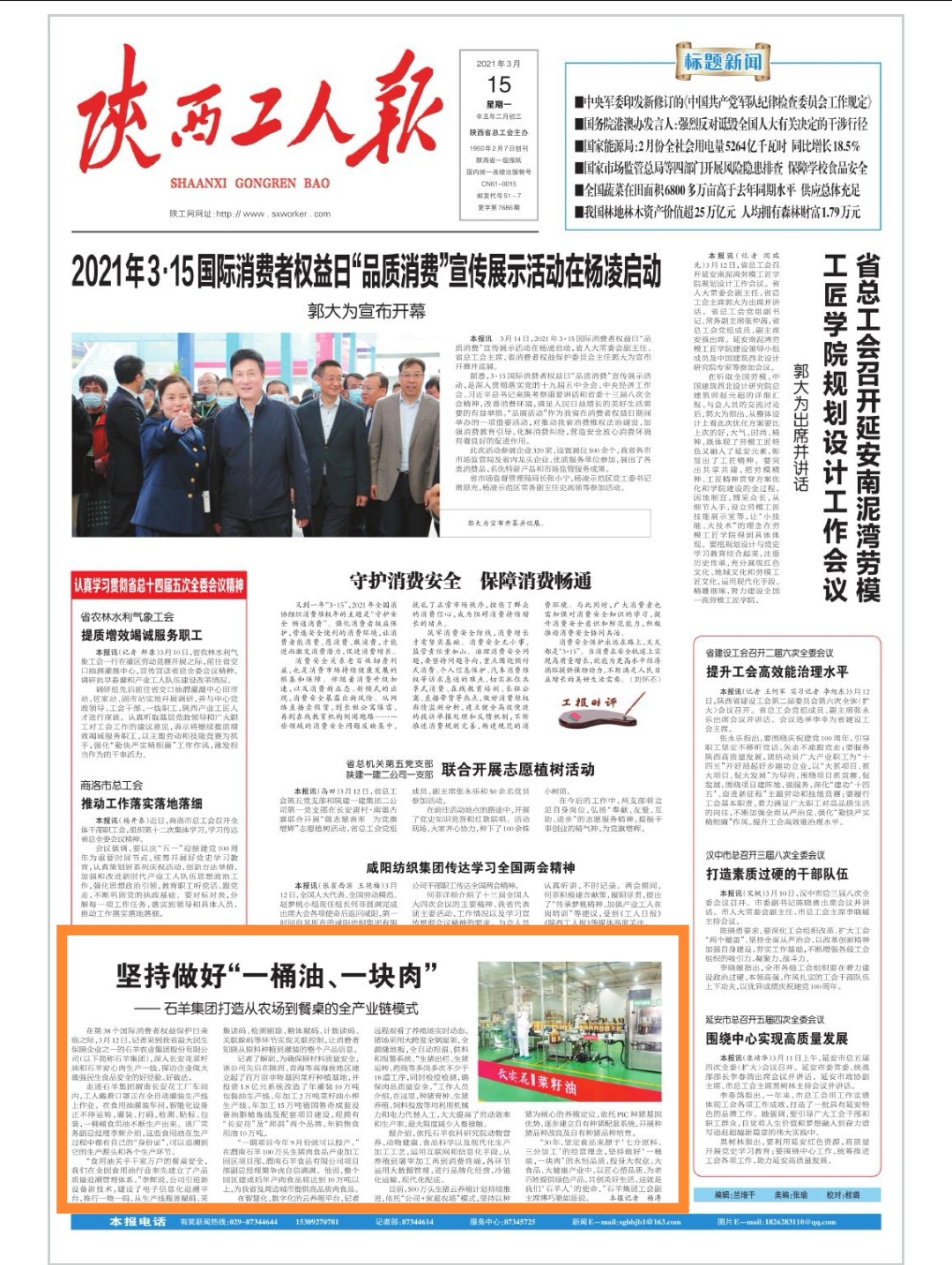 • 第39個(gè)國(guó)際消費(fèi)者權(quán)益保護(hù)日前夕,陜西日?qǐng)?bào)、西部網(wǎng)、陜西...