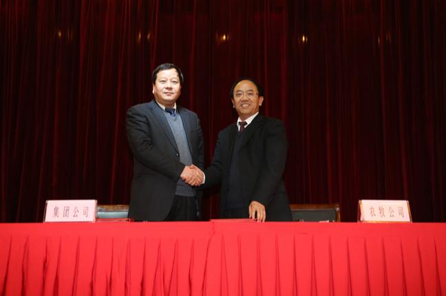 以上領(lǐng)導(dǎo)發(fā)言結(jié)束后,是"2014年度工作目標(biāo)經(jīng)營責(zé)任確認(rèn)書"簽字儀式。集團總裁常青山先生先后與副總裁兼農(nóng)牧產(chǎn)業(yè)總經(jīng)理韓春元先生、油脂產(chǎn)業(yè)總經(jīng)理孔紅民先生、匯邦地產(chǎn)總經(jīng)理劉恒先生、金融產(chǎn)業(yè)何新全先生簽約。